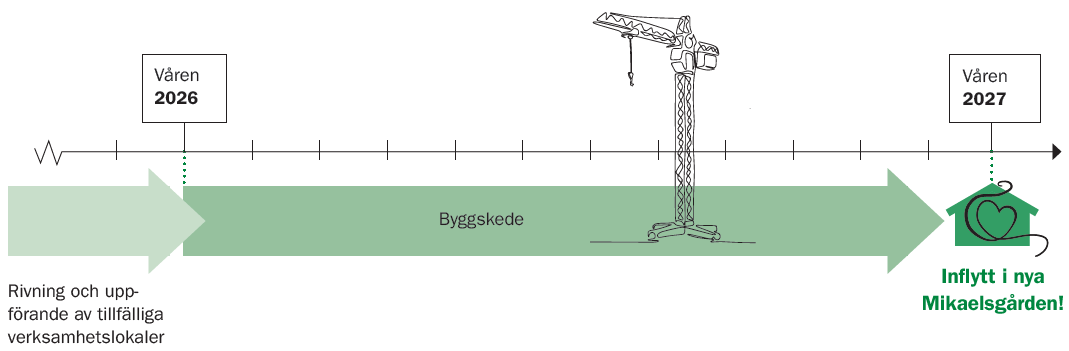 Den nuvarande fastigheten har tjänat sitt syfte och är nu uttjänt. För att Mikaelsgården ska kunna fortsätta vara en trygg och bärande plats – och samtidigt möta framtidens behov – behöver vi bygga nytt.